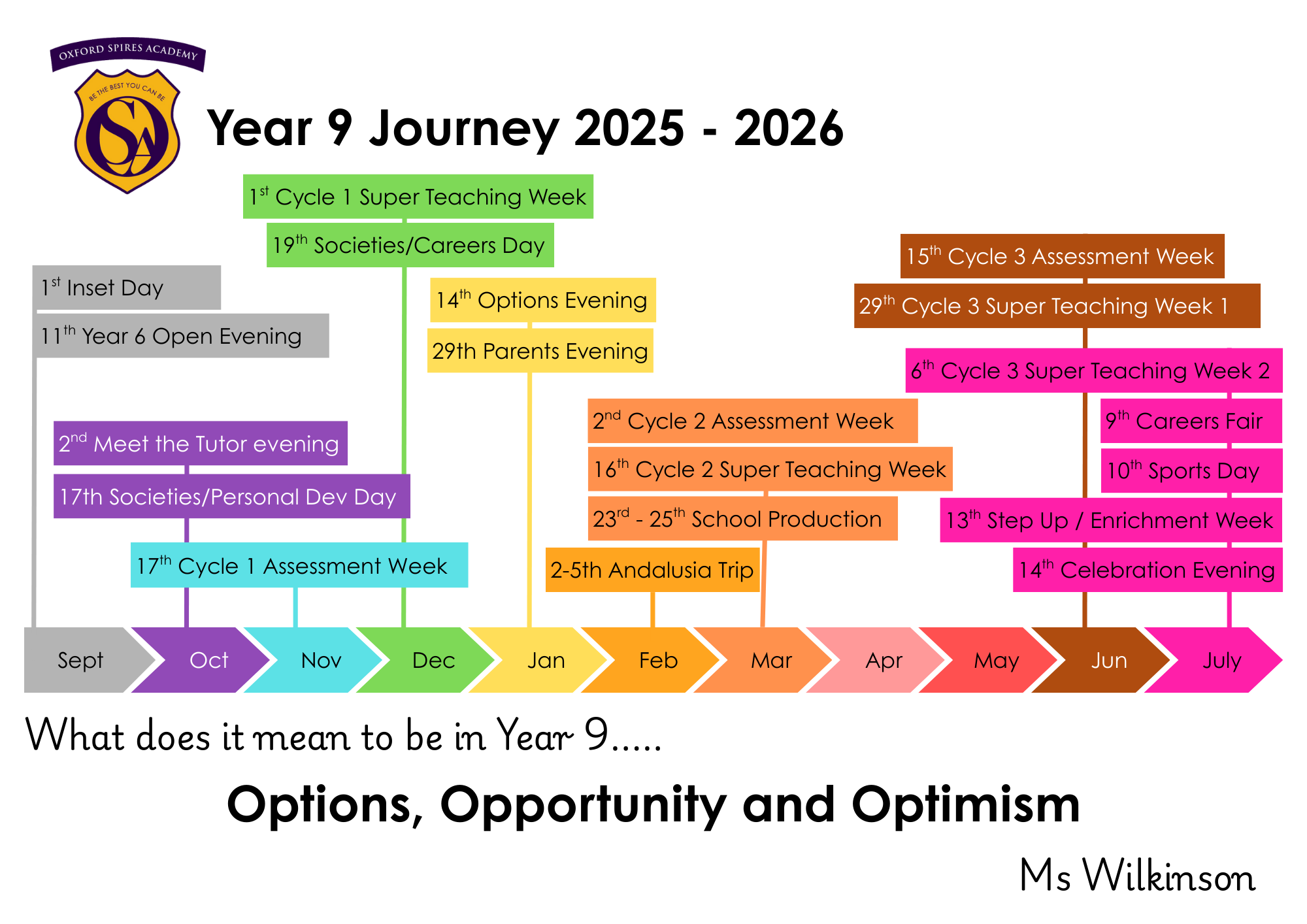 From a learning perspective, Year 9 students will be need to be thinking about their Year 10 options towards the middle of the year as they build their final GCSE portfolio. If they need any help deciding which courses to pursue, you could suggest that they speak to their class teachers; we will also invite you and your child to a GCSE choices evening before final decisions have to be made.